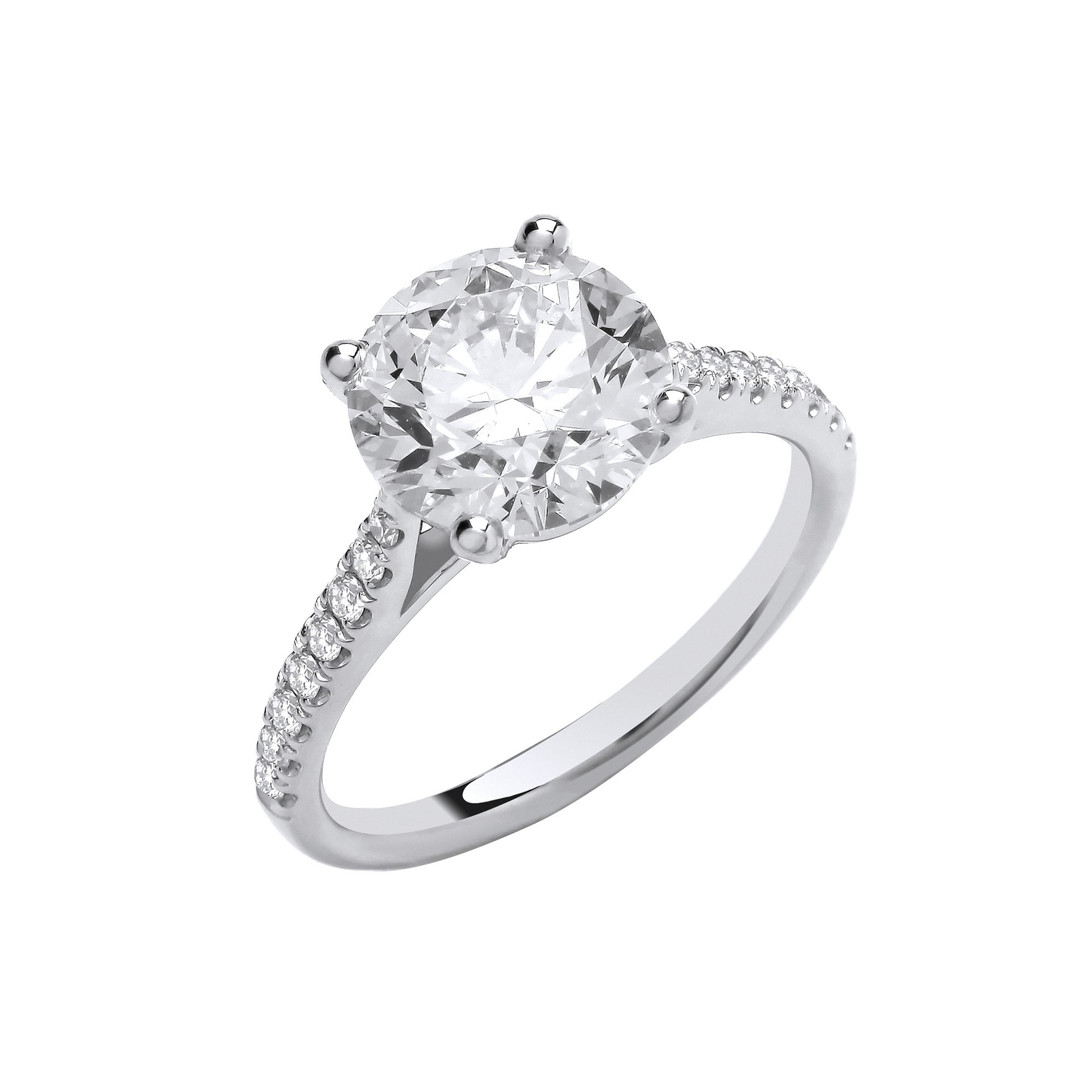 2.17ct Round Brilliant Cut Diamond Shoulder Engagement Ring - D/E, VVS/VS - IGI - 18ct White Gold
