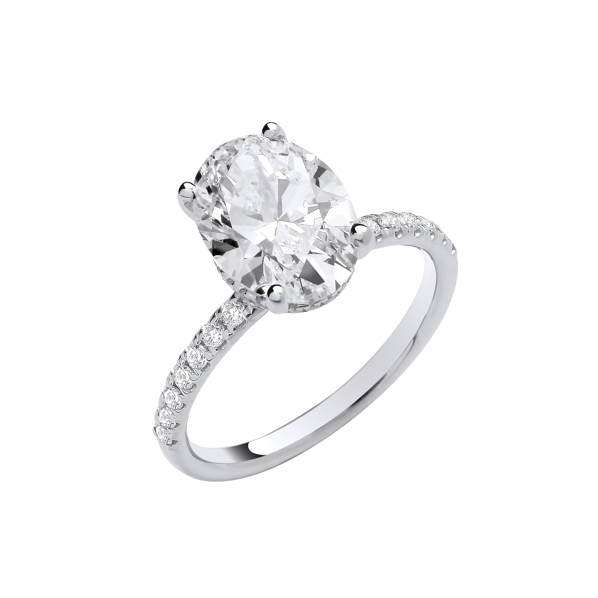 3.28ct Oval Cut Hidden Halo & Diamond Shoulder Engagement Ring - D/E, VVS/VS - IGI - 18ct White Gold
